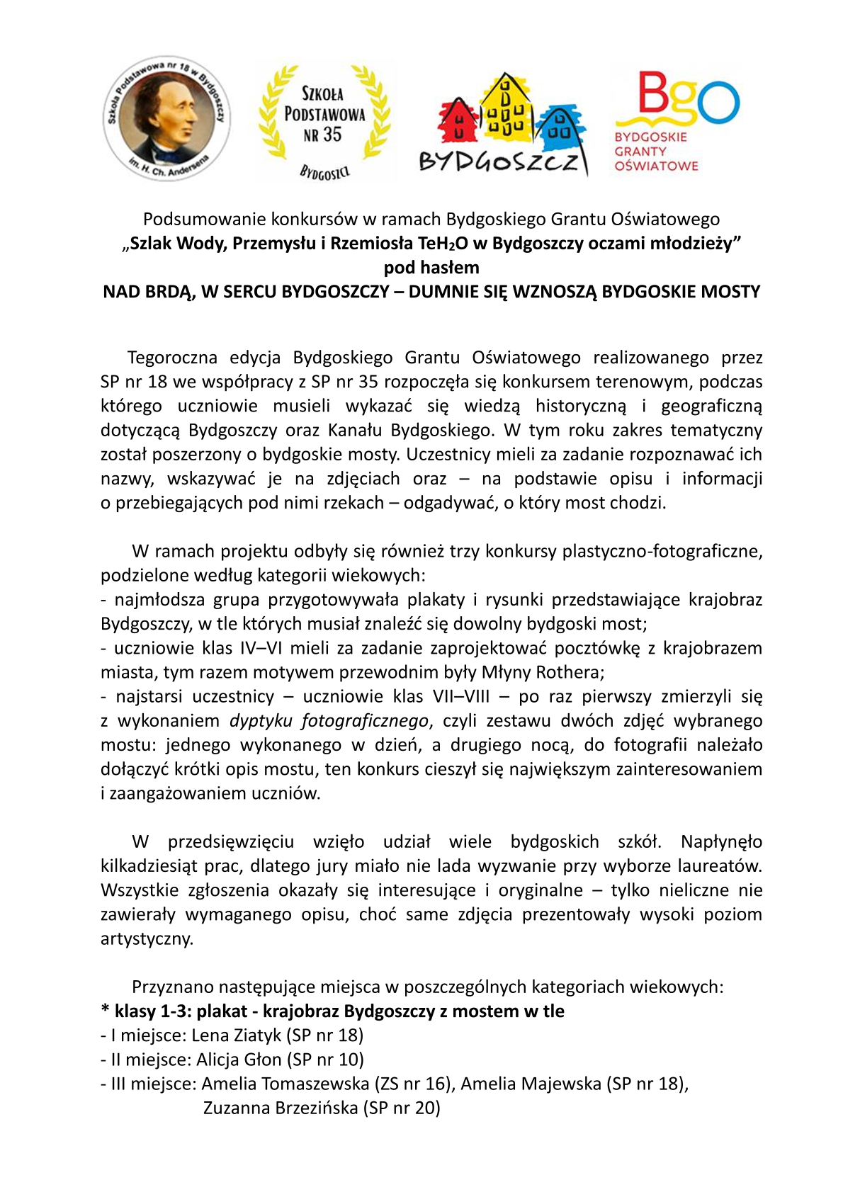 „Szlak Wody, Przemysłu i Rzemiosła TeH 2 O w Bydgoszczy oczami młodzieży”