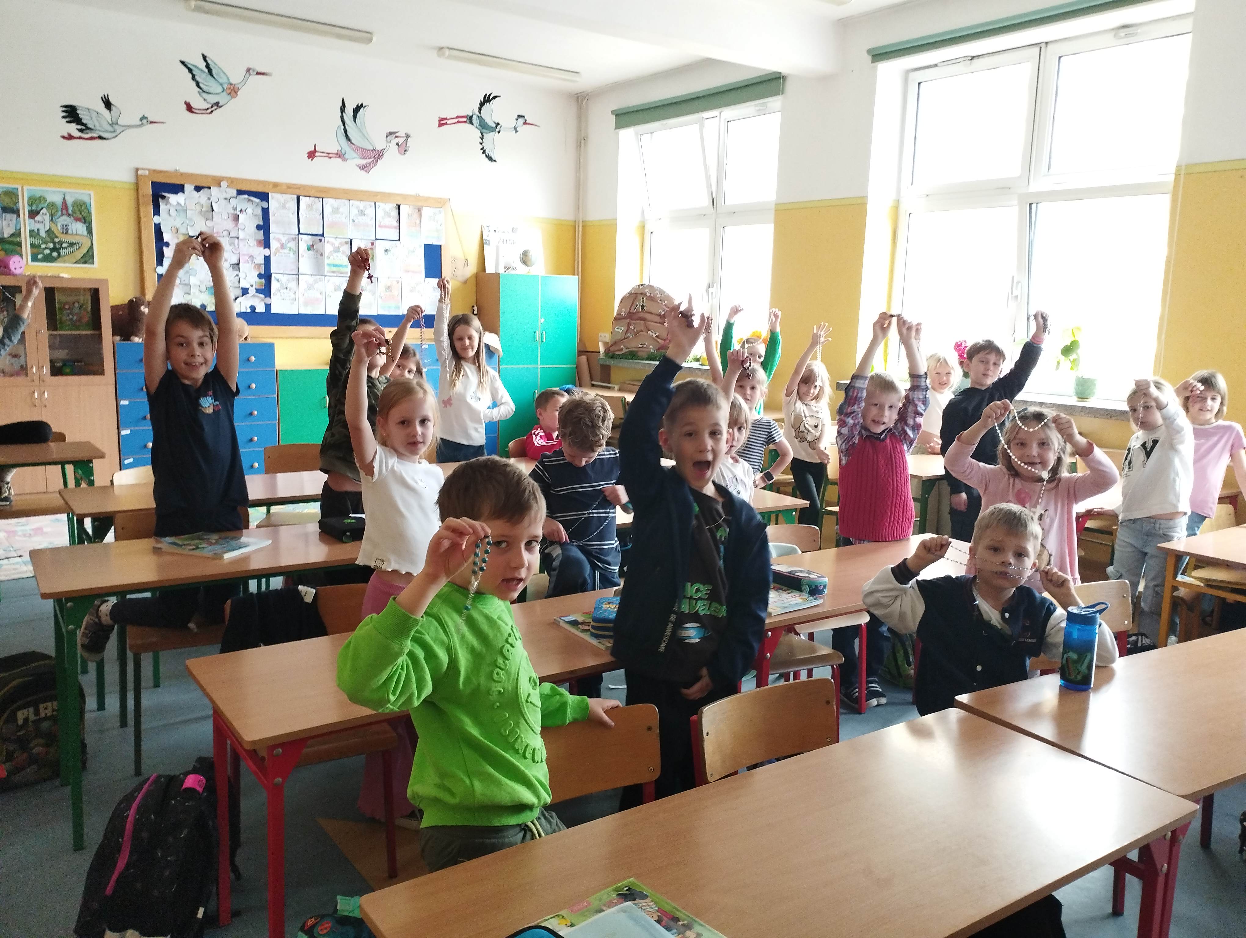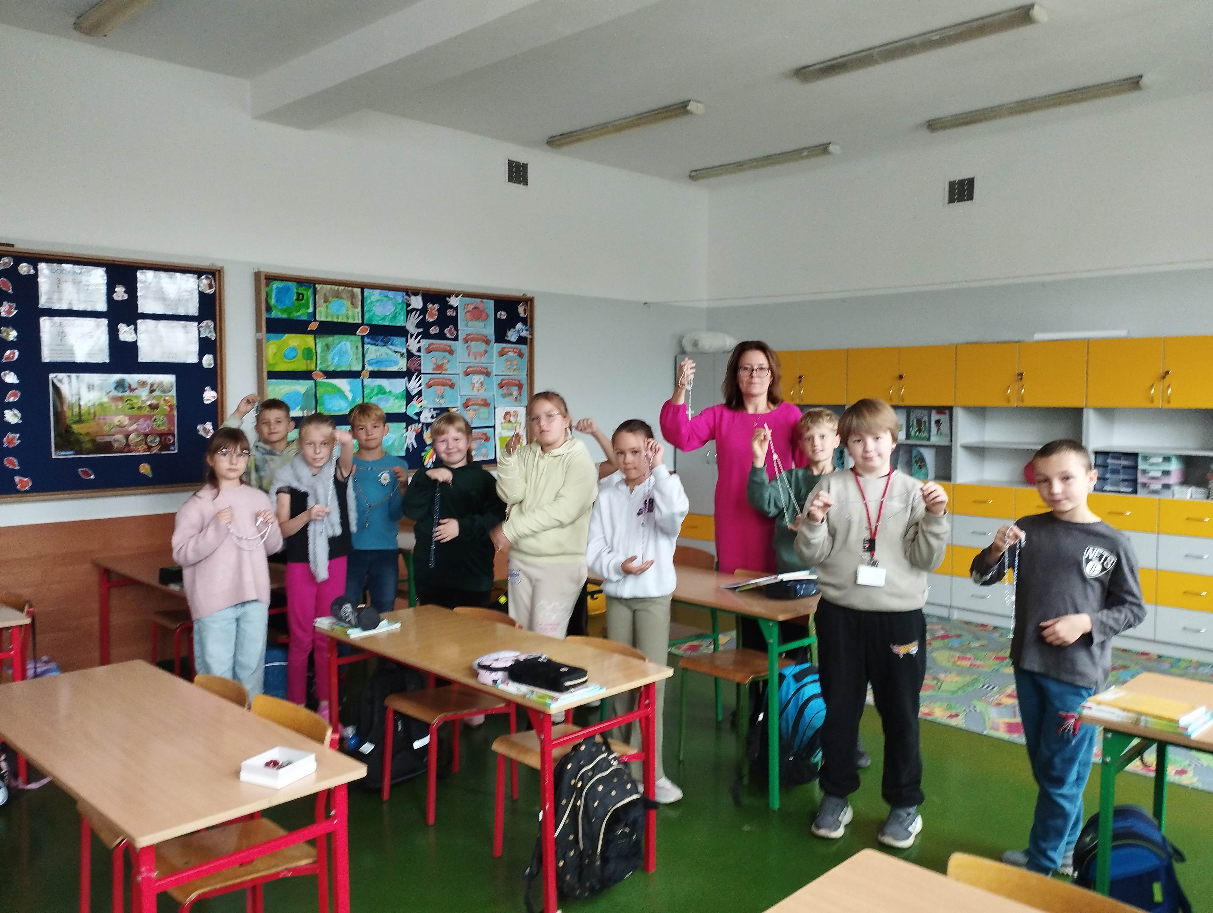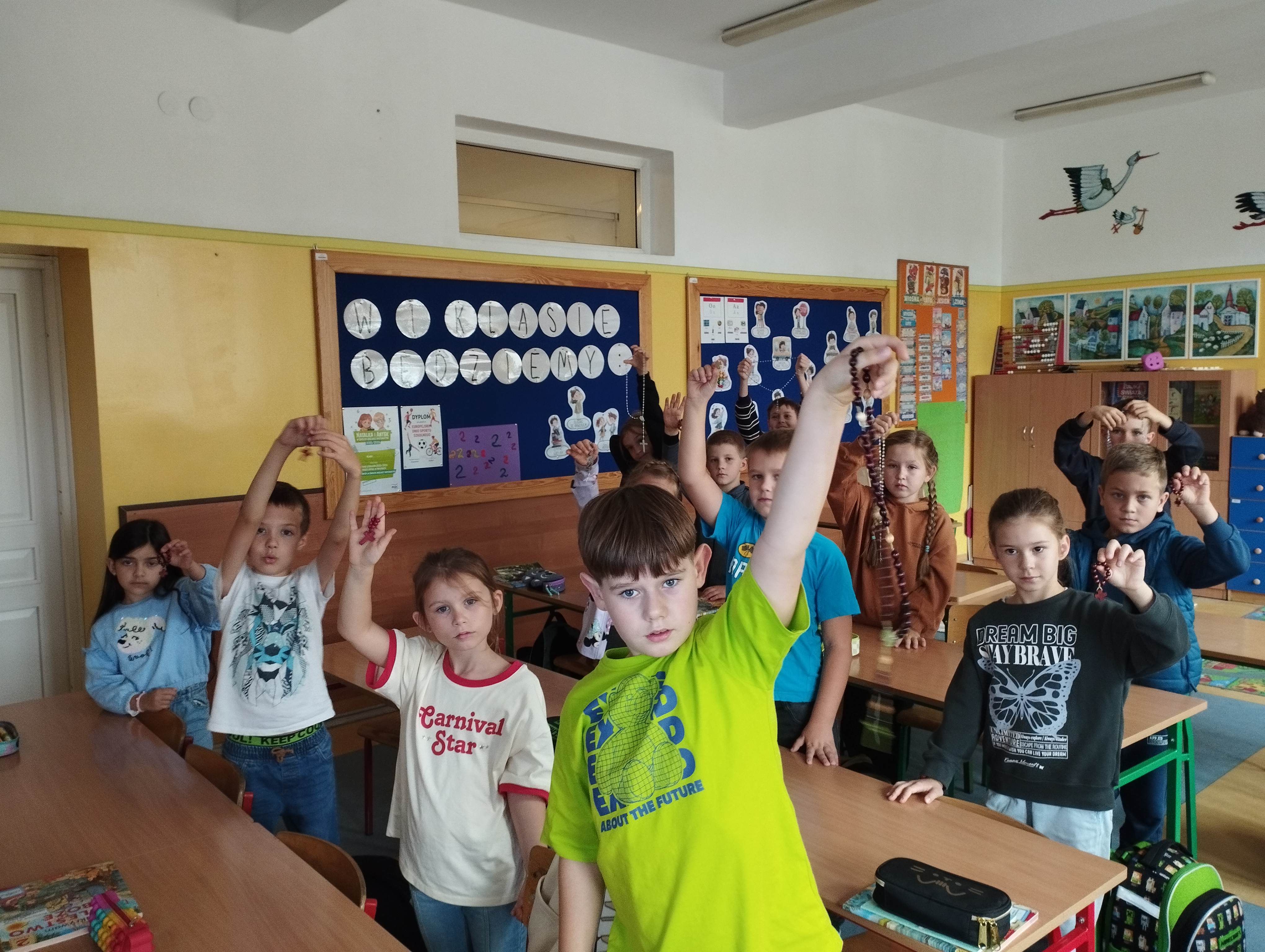 W dniu 7 października br., w liturgiczne wspomnienie Najświętszej Maryi Panny Różańcowej, kolejny raz uczniowie naszej szkoły wraz z nauczycielami wzięli udział w 20-tej edycji międzynarodowej kampanii modlitewnej „Milion dzieci modli się na różańcu”. Podczas lekcji religii dzieci odmówiły dziesiątek różańca w intencji jedności i pokoju na świecie. Tegoroczna, jubileuszowa edycja wpisuje się w Jubileuszowy Rok 2025 przeżywany w Kościele pod hasłem „Pielgrzymi nadziei”. To była wyjątkowa okazja, aby jeszcze mocniej podkreślić znaczenie modlitwy dzieci dla pokoju na świecie. Głos ponad miliona dzieci ponownie uniósł się ku niebu z ufnością i nadzieją.