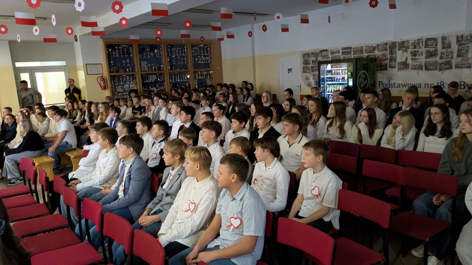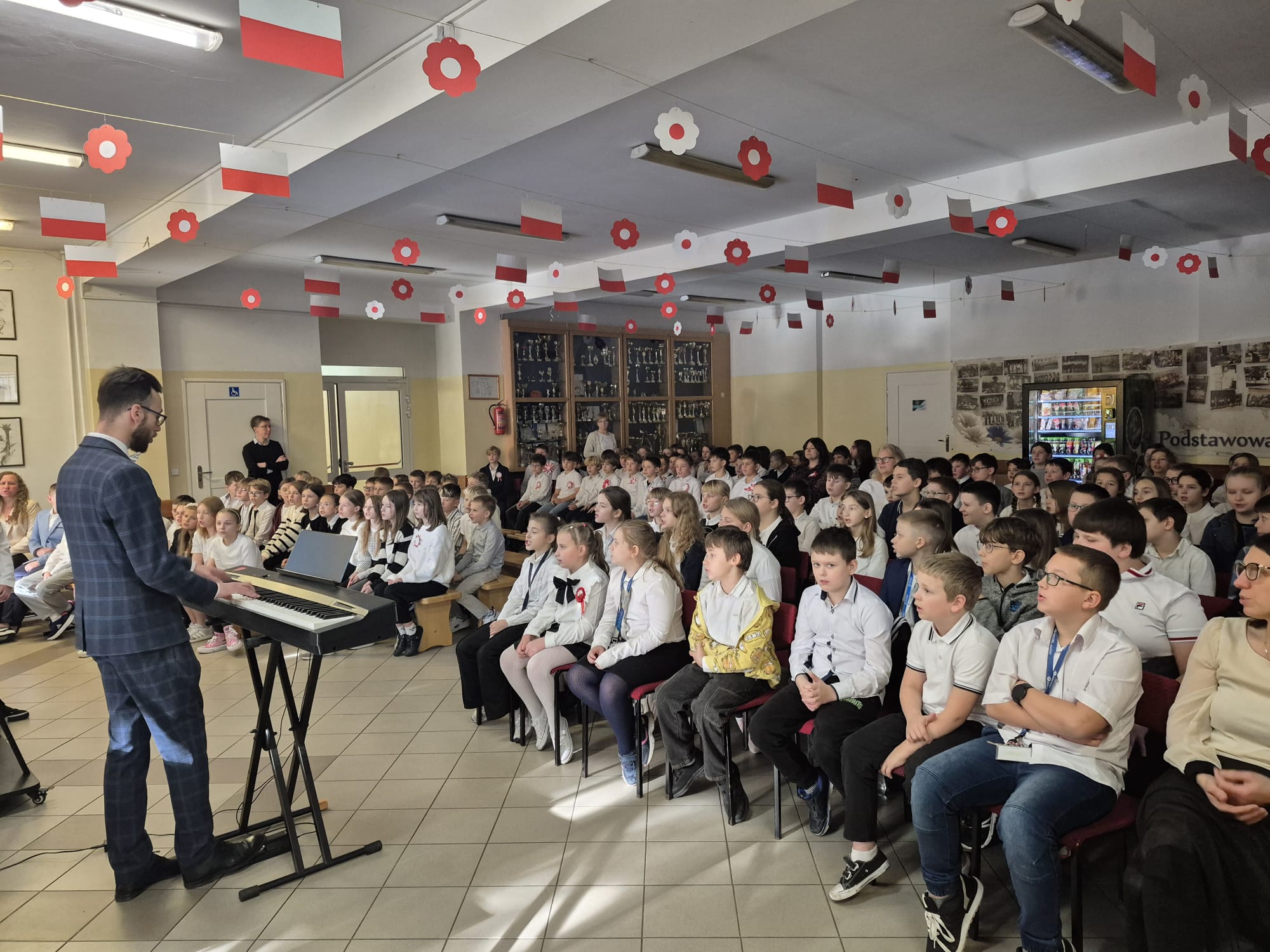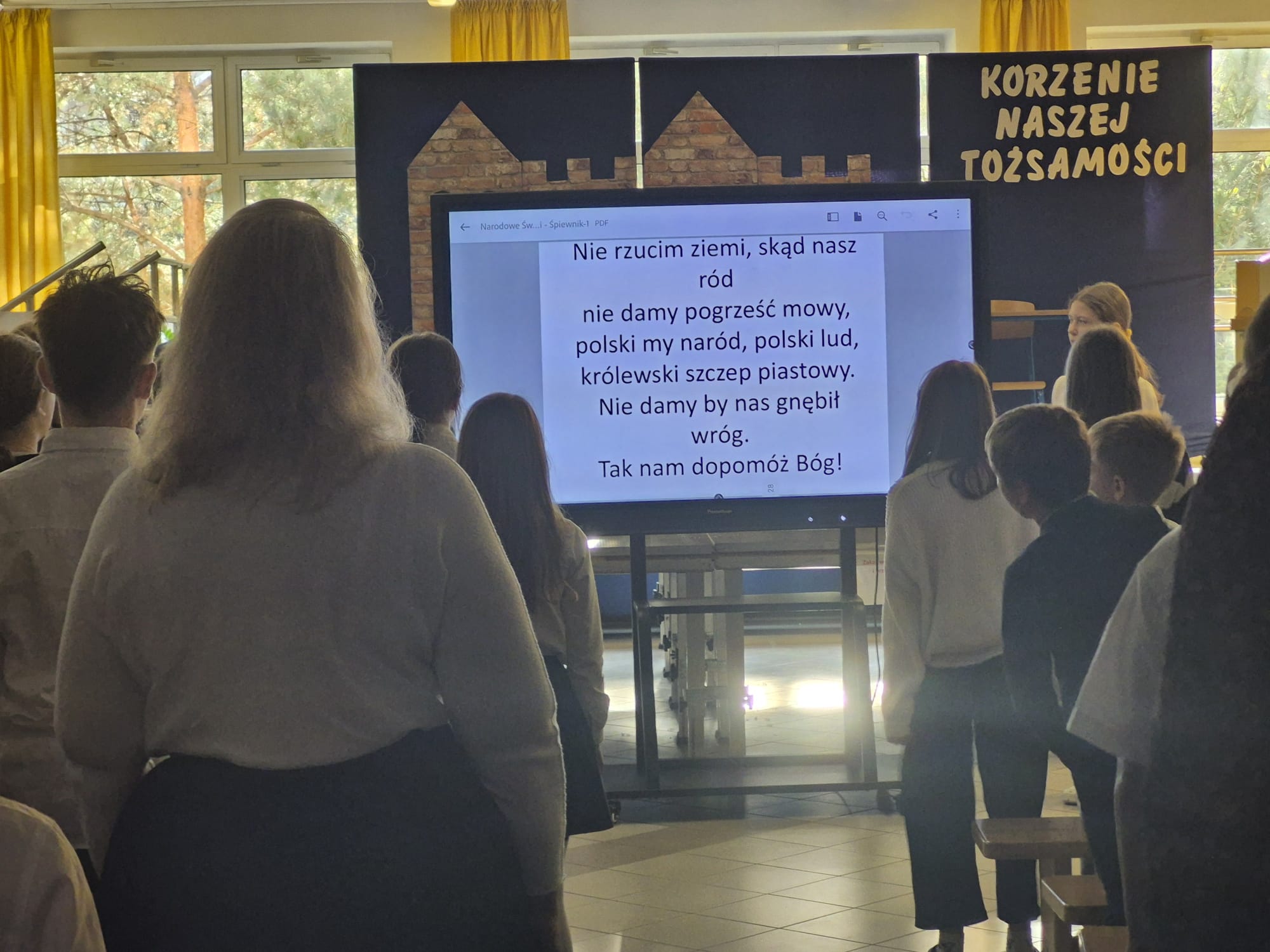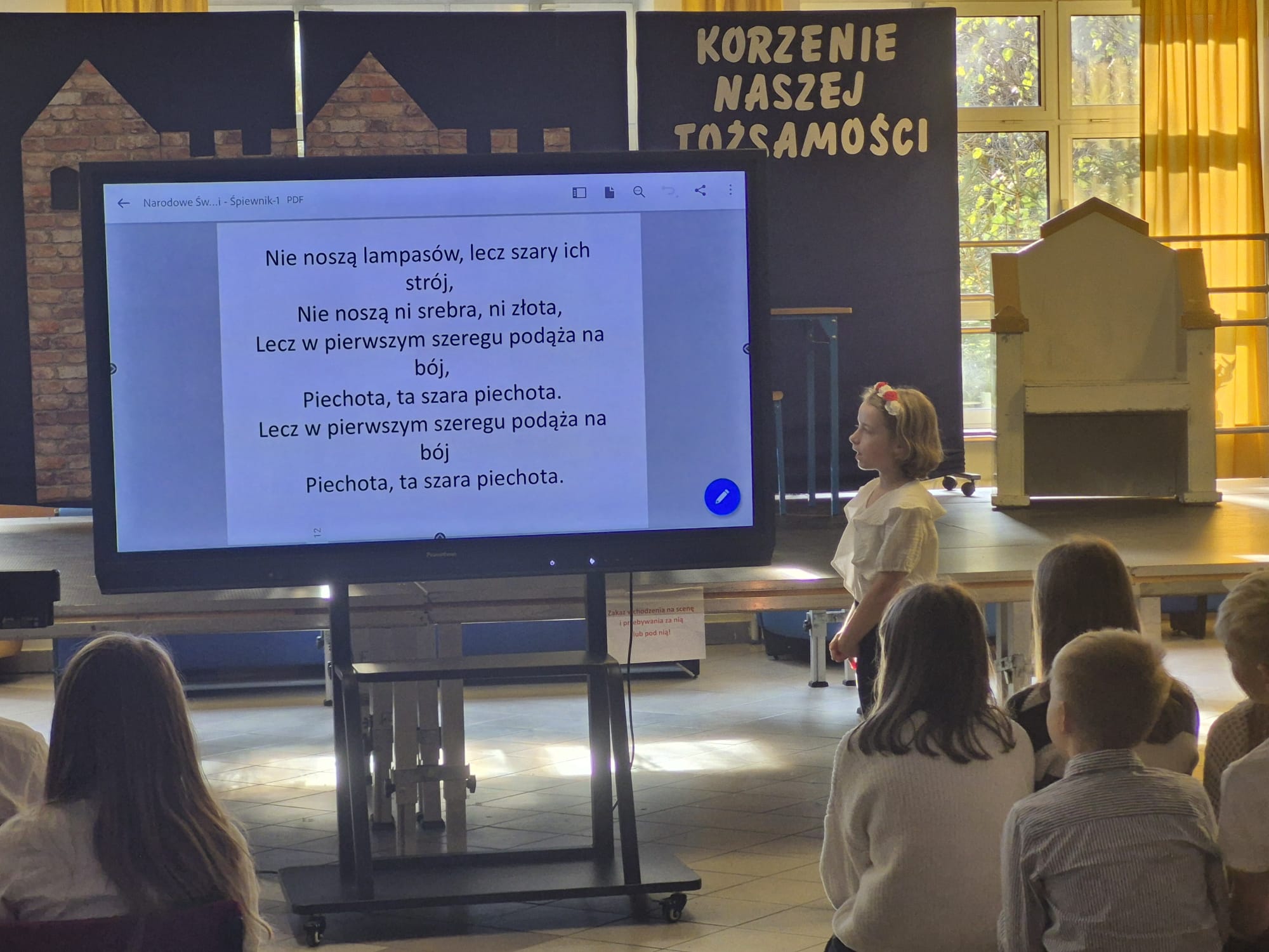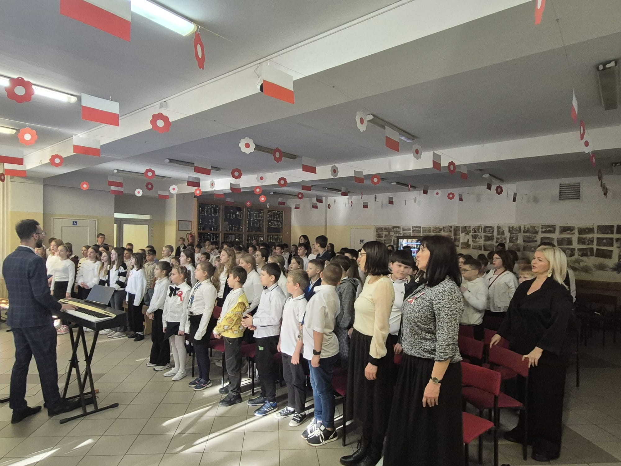 na ustach. Klasy 4 – 7 uczciły narodowe święto wspólnym śpiewaniem