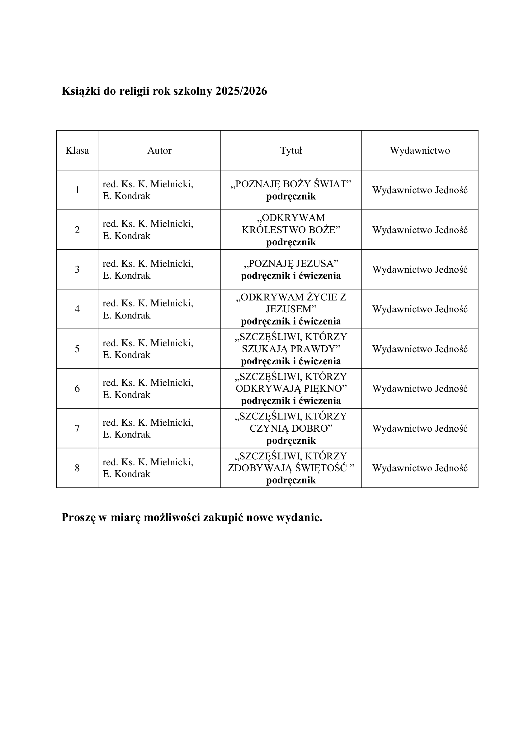 SPIS PODRĘCZNIKÓW DO RELIGII NA NOWY ROK SZKOLNY 2025/2026