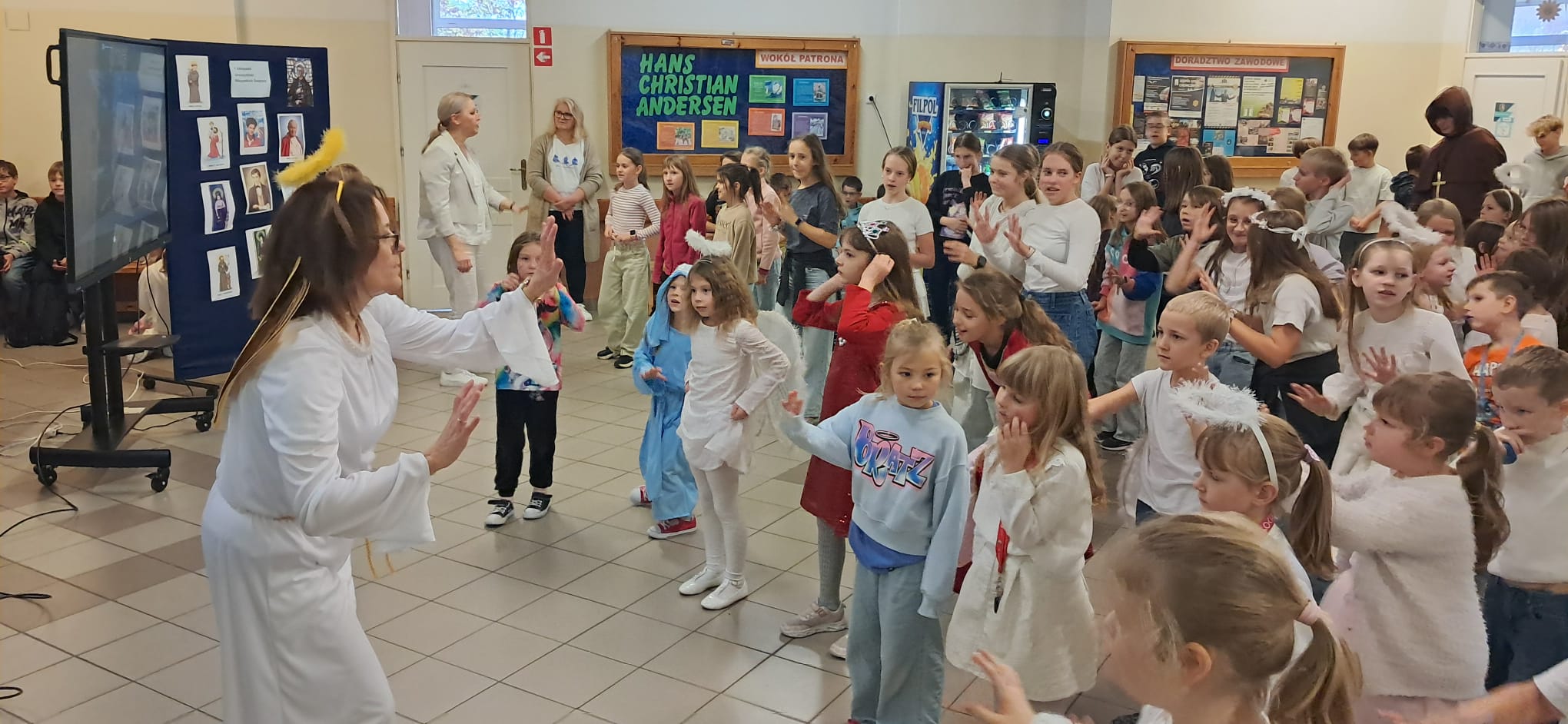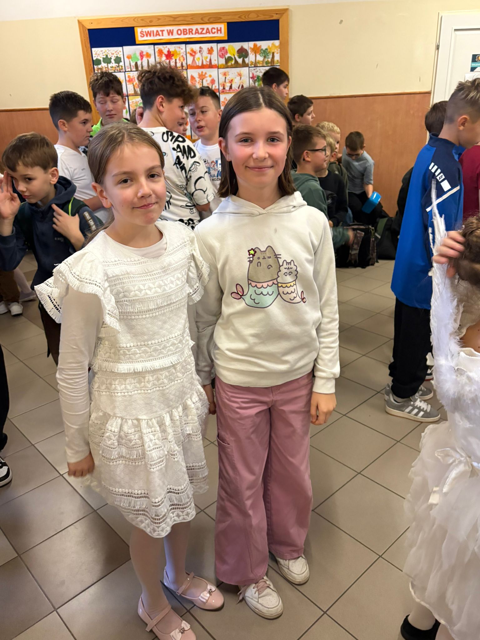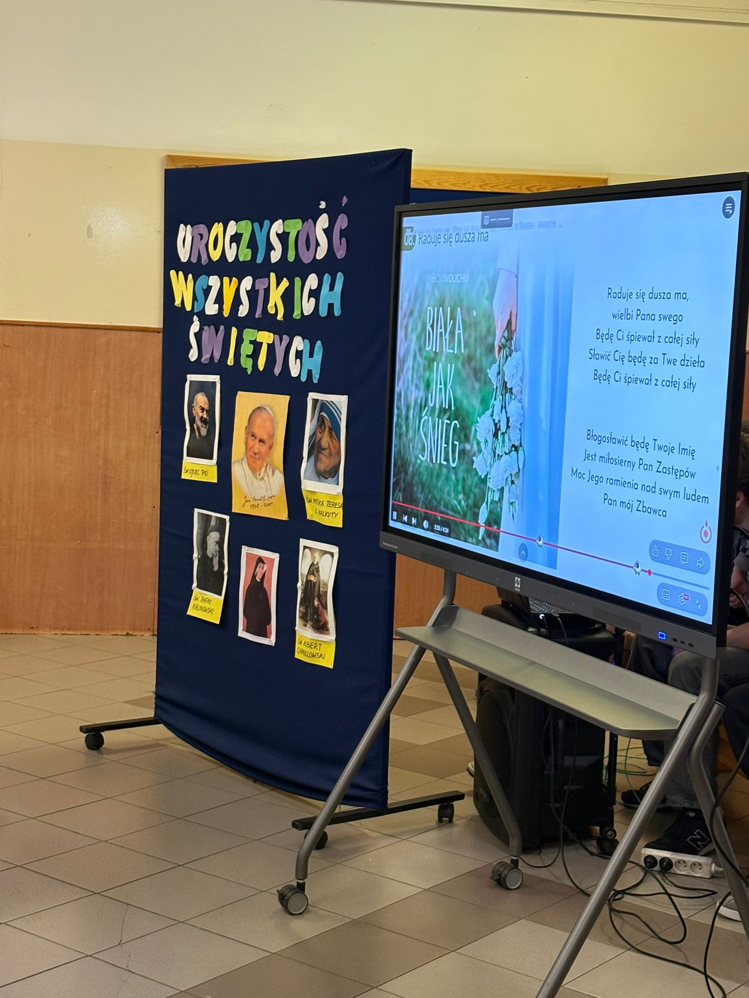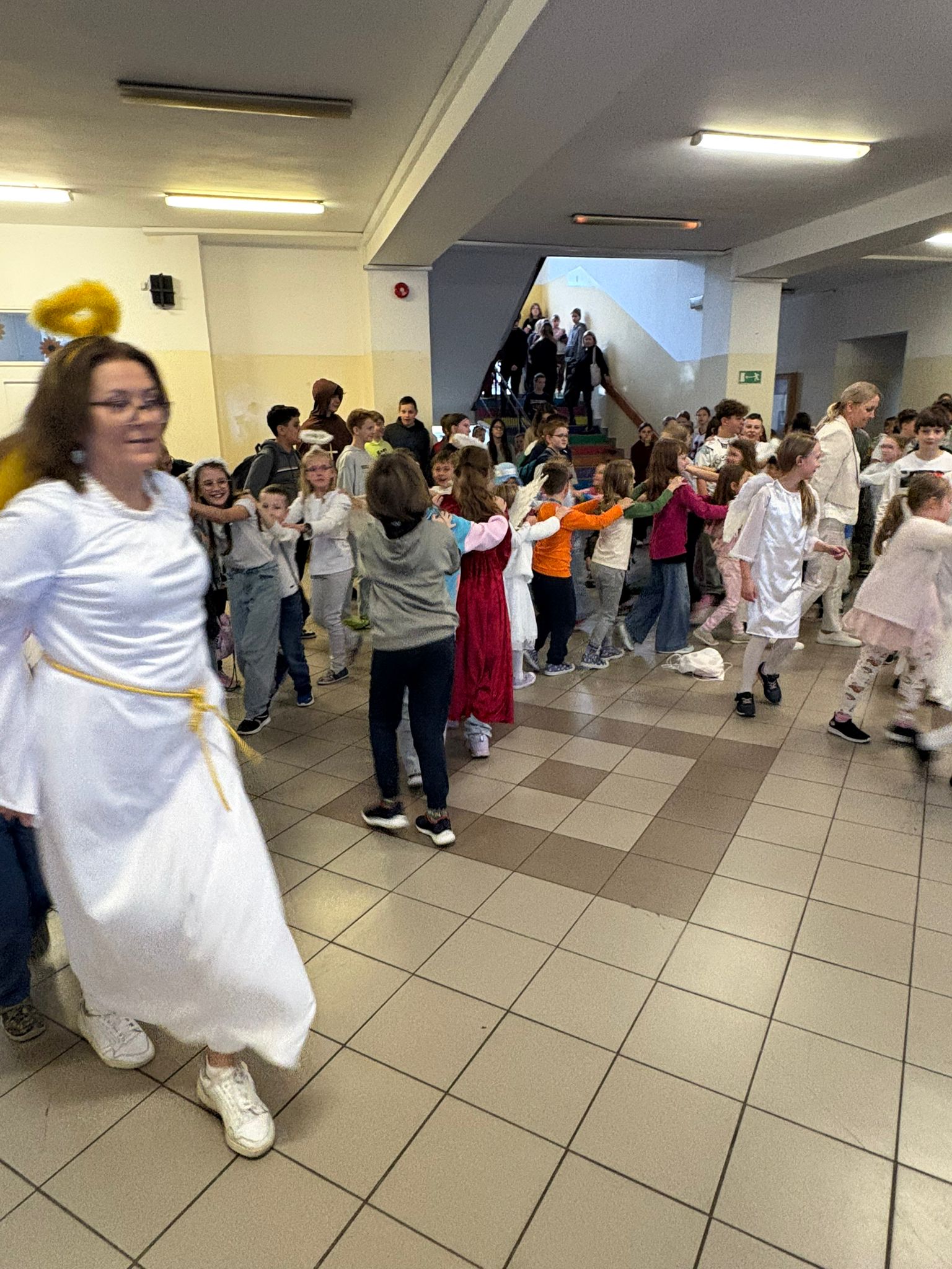 Z okazji Uroczystości Wszystkich Świętych zebraliśmy się na muzycznej przerwie, aby zaśpiewać i zatańczyć „Góry do góry” zespołu Małe TGD, „Raduje się dusza ma” zespołu Mocni w Duchu oraz „Święty Uśmiechnięty” Arki Noego. W ten sposób chcieliśmy podkreślić radosny wymiar tej Uroczystości. Uczniowie mogli przebrać się za świętych i błogosławionych, anioły, bądź ubrać się na biało. Dziękujemy wszystkim za przebranie i udział we wspólnej zabawie!