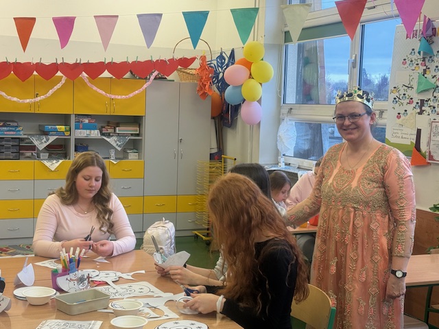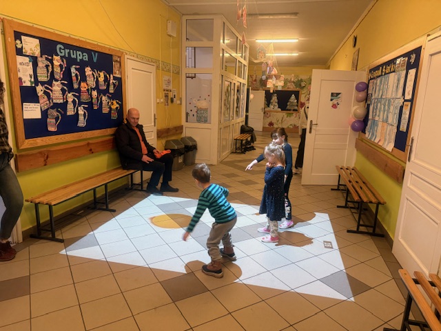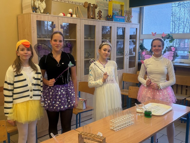 Już od progu na gości czekali uśmiechnięci nauczyciele i zaangażowani uczniowie z wolontariatu – wielu z nich w bajkowych przebraniach, co od razu wprowadzało w wyjątkowy, radosny klimat. Każde dziecko otrzymywało mapkę szkoły, dzięki której mogło wyruszyć na niezwykłą przygodę po szkolnych zakamarkach.