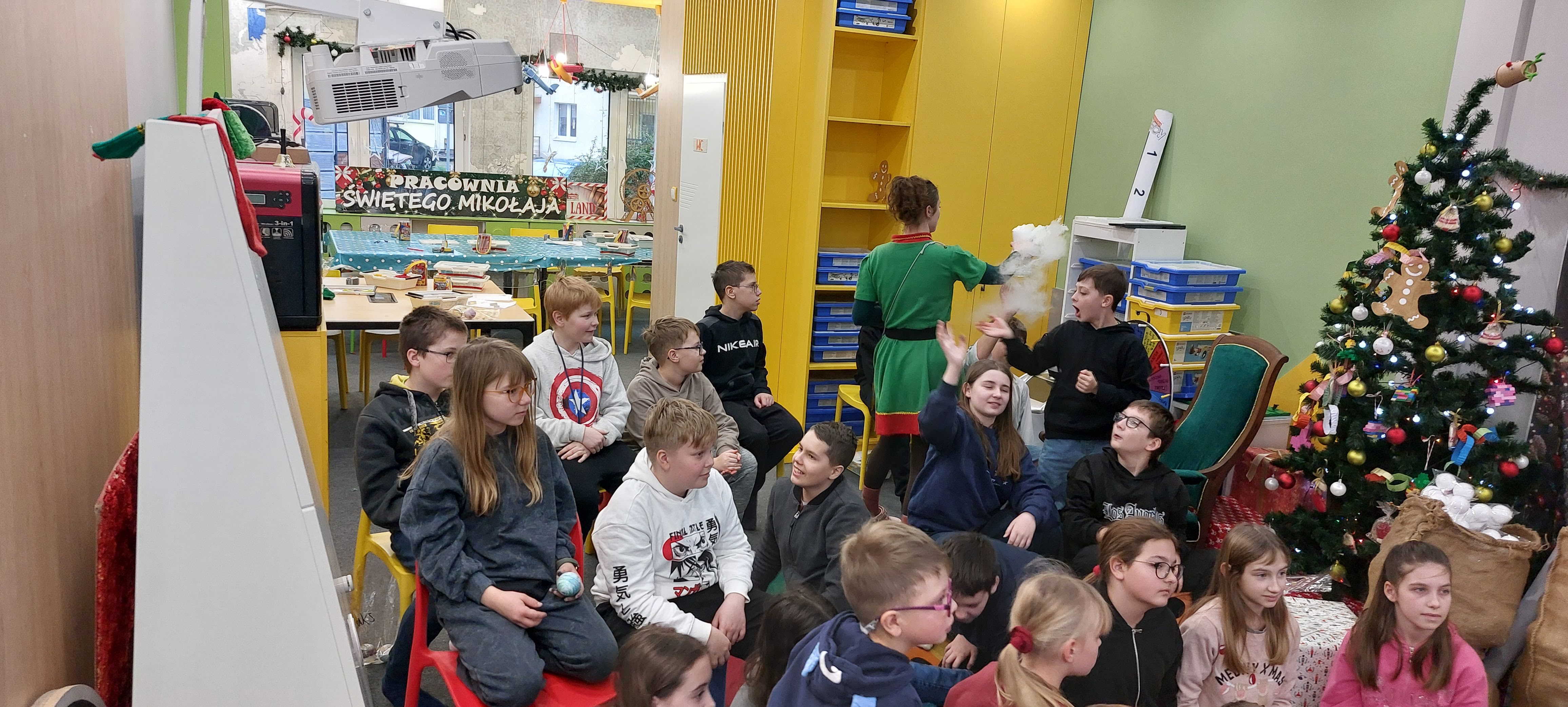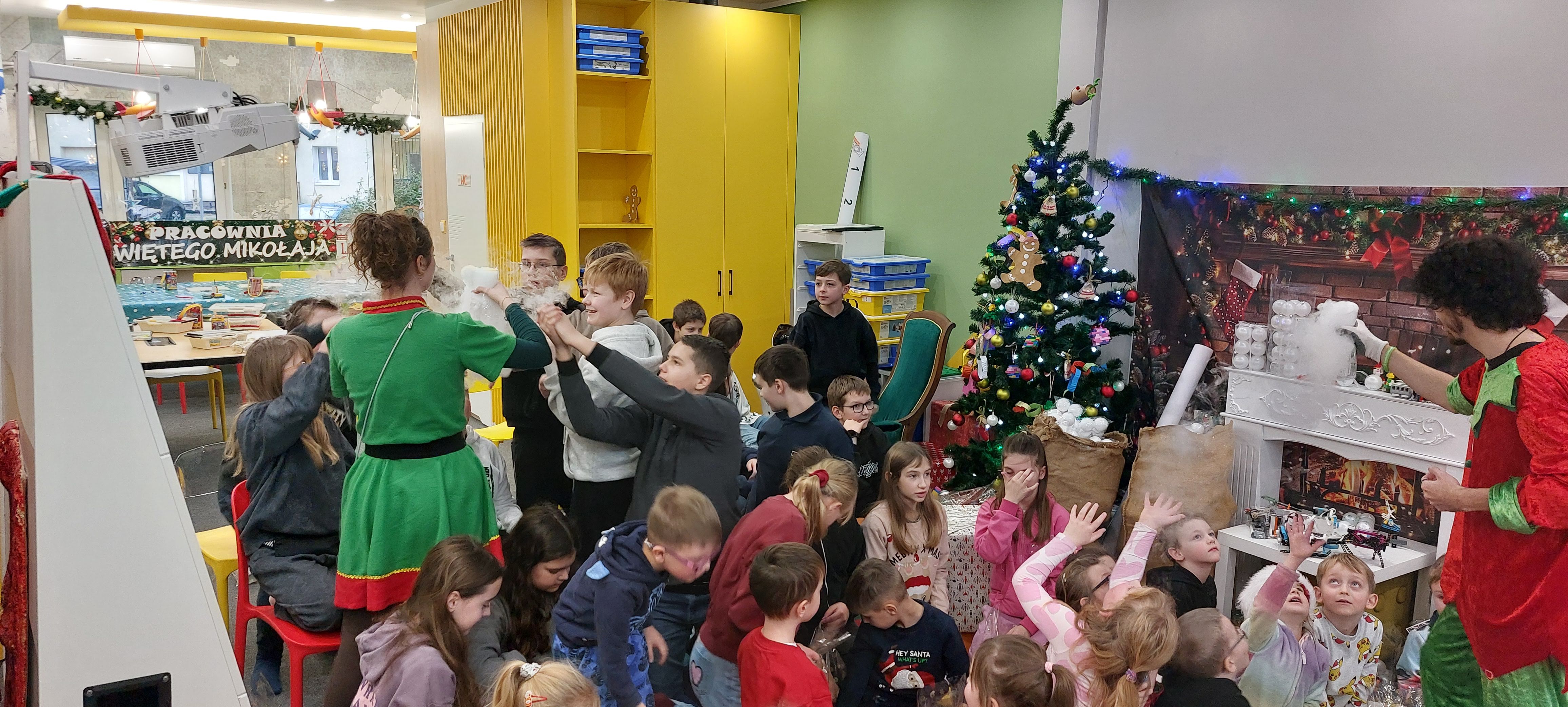Klasa 5c wybrała się z opiekunami na warsztaty świąteczne do ROBOprojekt. Dzieci tworzyły kreatywne ozdoby świąteczne, wykonały śnieżne kule oraz kolorowe bombki, a także przeprowadziły eksperymenty z suchym lodem. Uczniom towarzyszyła miła atmosfera i świąteczne piosenki.