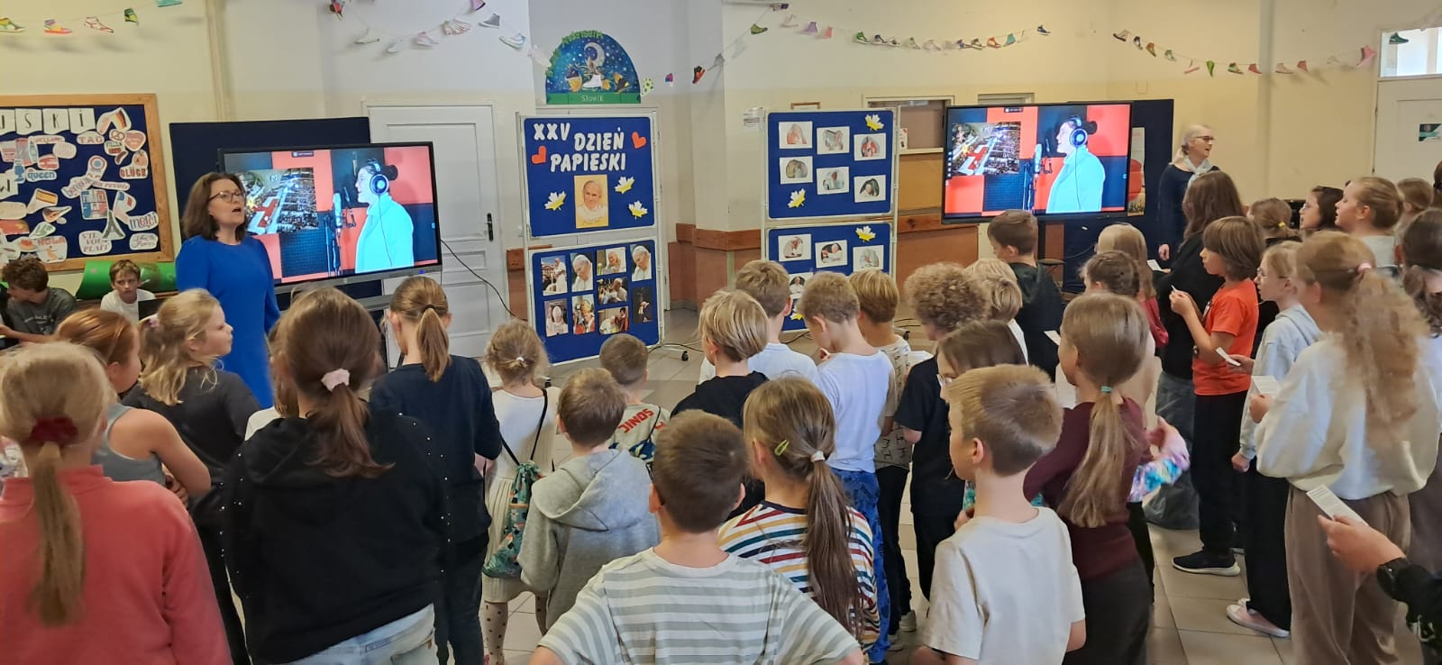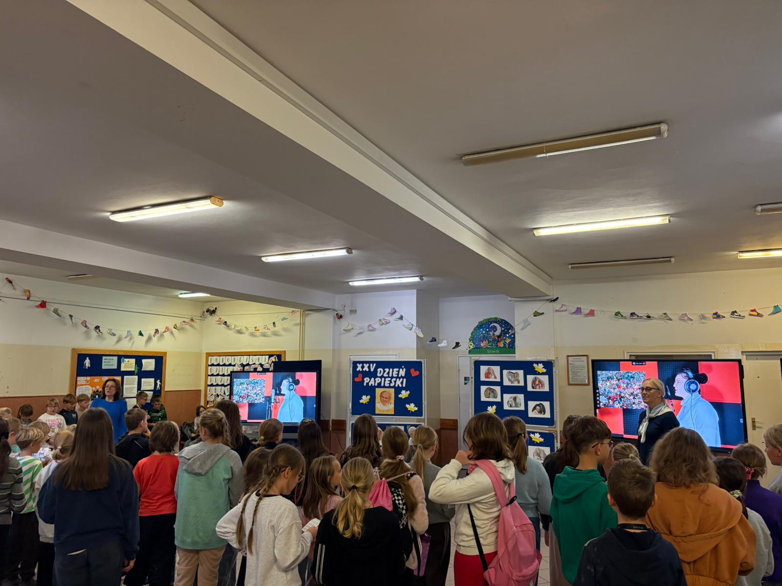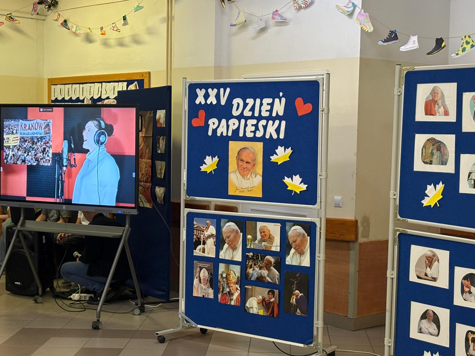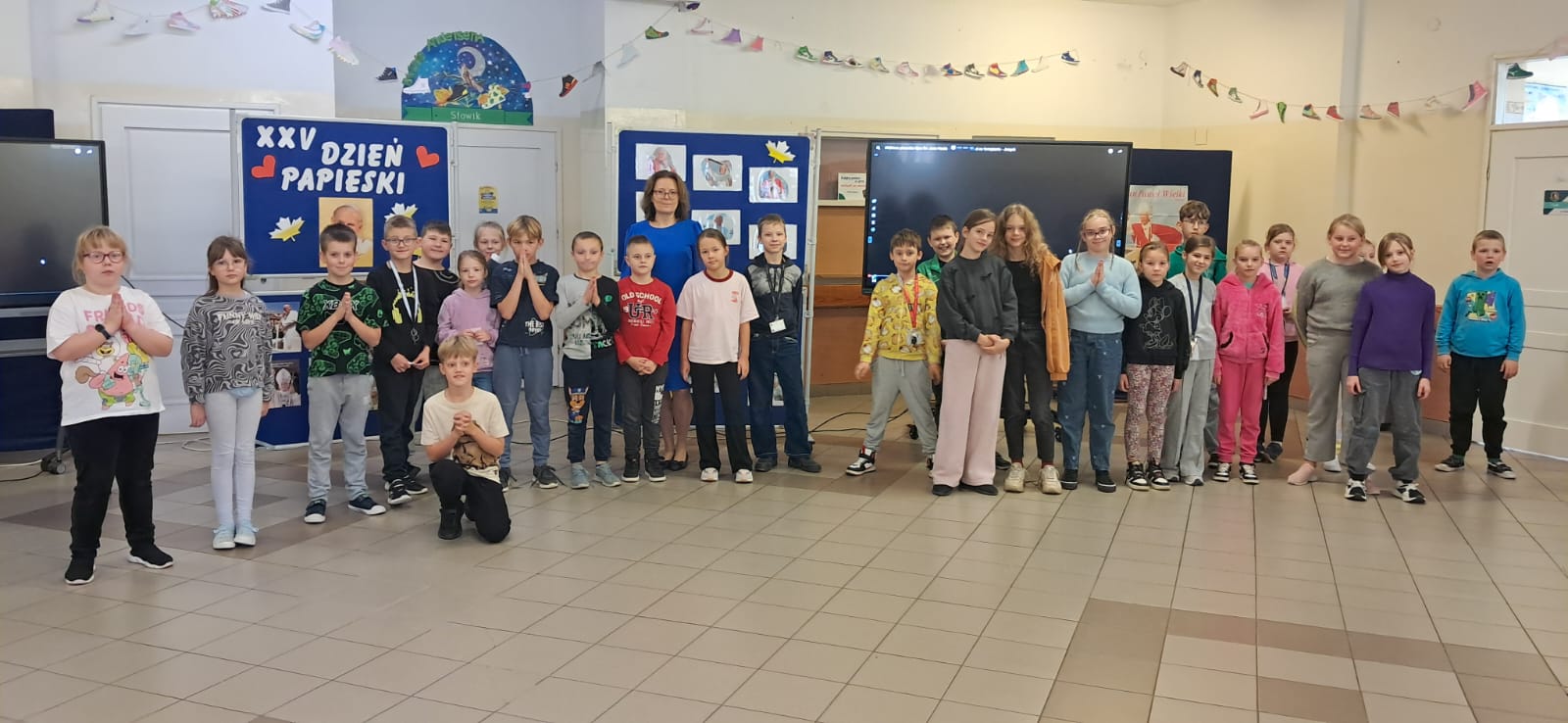 XXV Dzień Papieski odbył się pod hasłem „Św. Jan Paweł II. Prorok nadziei”. Hasło nawiązuje do Roku Jubileuszowego i przypomina, że nadzieja w Chrystusie była fundamentem nauczania Papieża Polaka. W dniu 16 października br., w rocznicę wyboru Karola Wojtyły na papieża, uczniowie naszej szkoły wraz z nauczycielami zgromadzili się, aby zaśpiewać „Barkę” - ulubioną pieśń św. Jana Pawła II oraz piosenkę „Lolek”. W ten sposób uczciliśmy pamięć o Wielkim Polaku i Wielkim Świętym, który uczył nas wiary, nadziei i miłości oraz odwagi w codziennym życiu.
