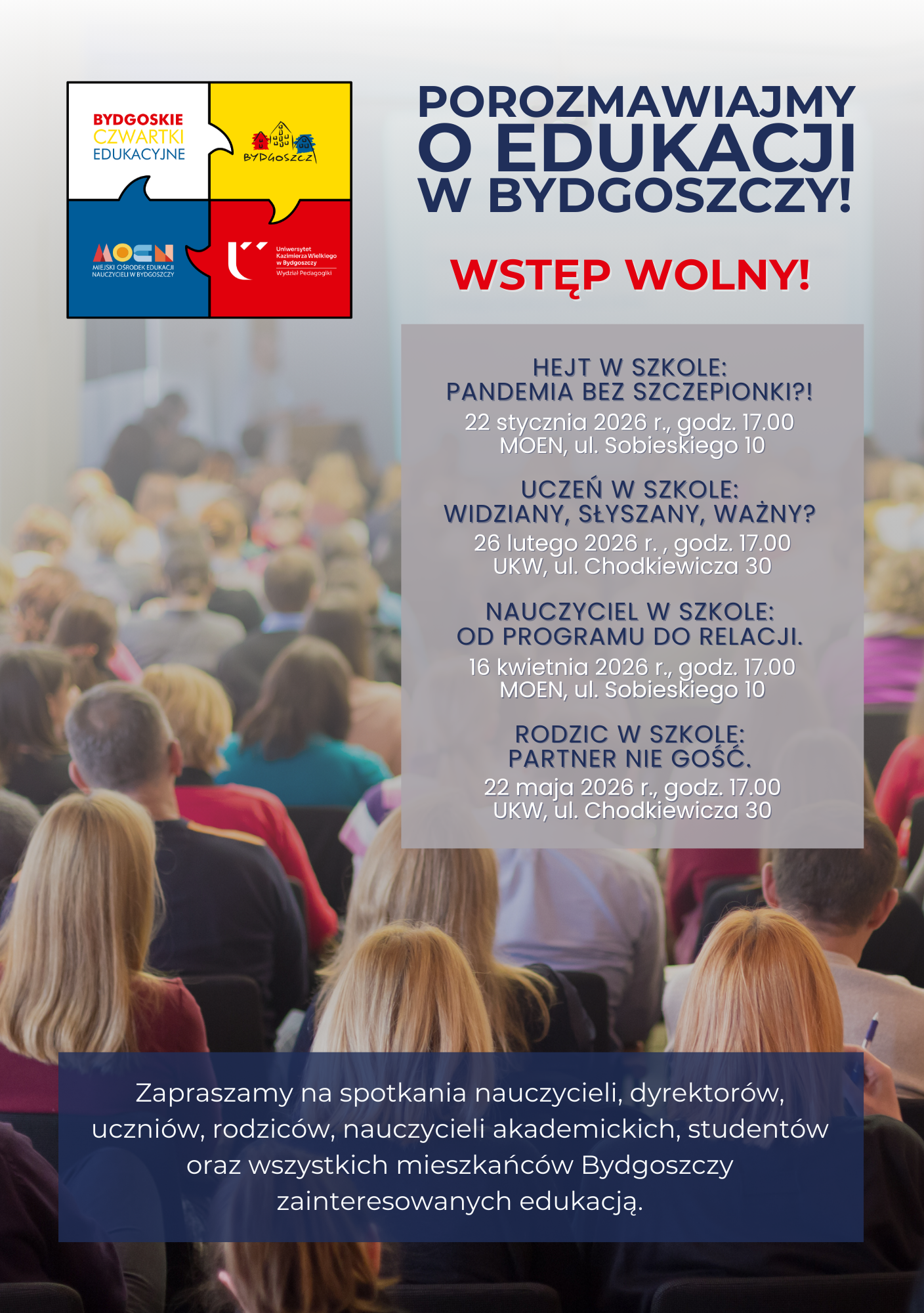 Zaproszenie na nowy cykl spotkań organizowanych w ramach projektu Bydgoskie Czwartki Edukacyjne (BCE)