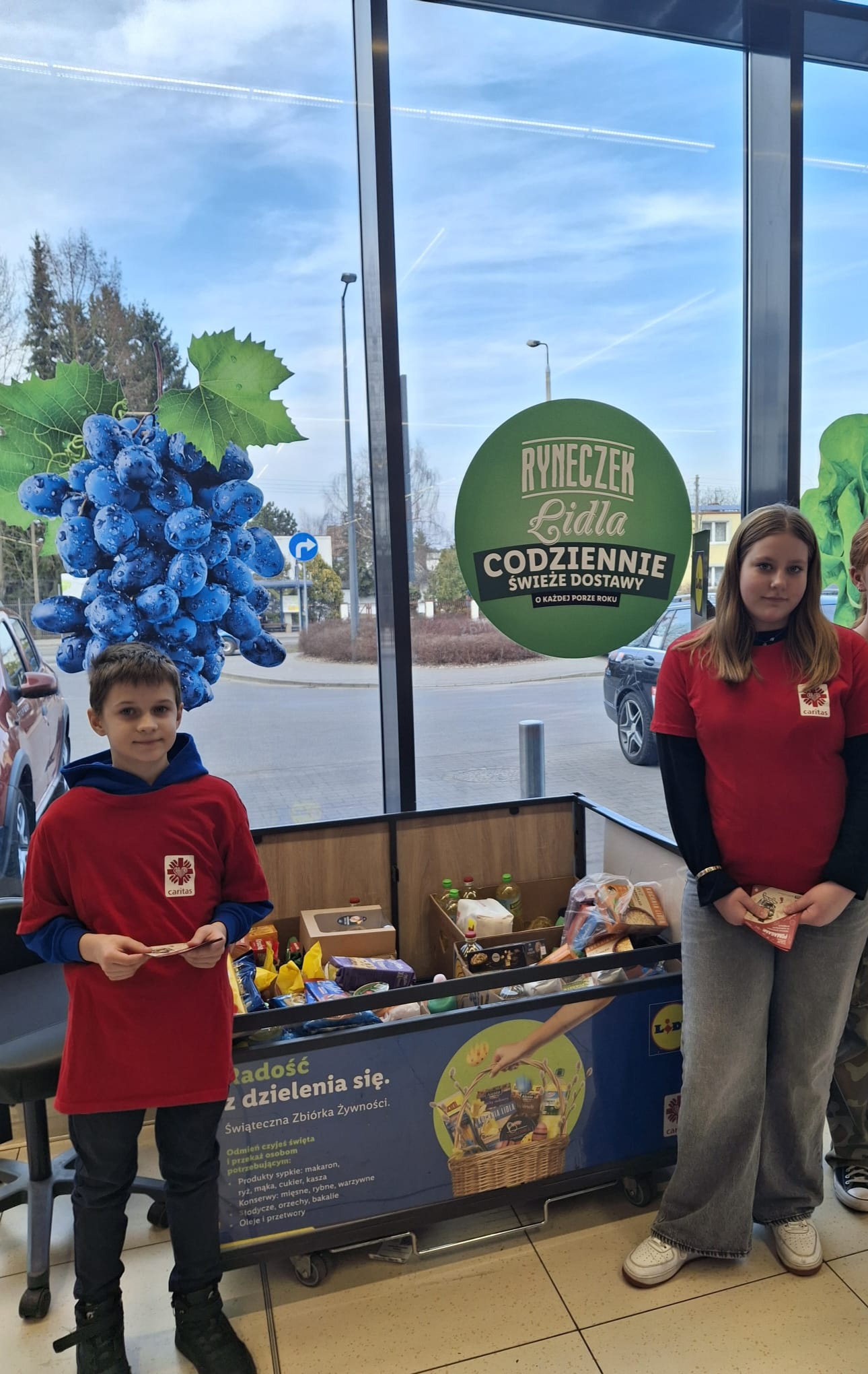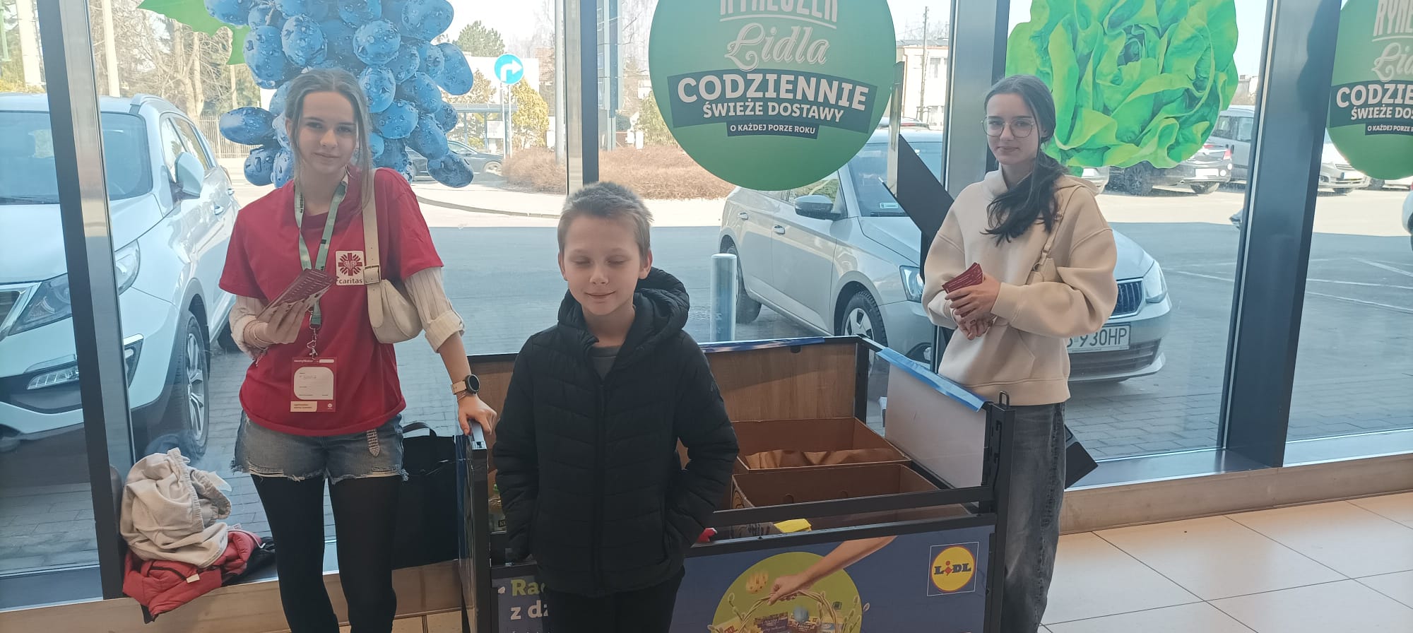 14 marca 2026 roku wolontariusze Szkolnego Koła Caritas z opiekunami wzięli udział w zbiórce żywności oraz środków czystości dla potrzebujących. W akcji, która miała miejsce w Lidlu, wzięło udział 7 wolontariuszy oraz 4 opiekunów. Z zebranych produktów ok. 85 kg zrobiliśmy paczki dla naszych uczniów oraz ich rodzin.