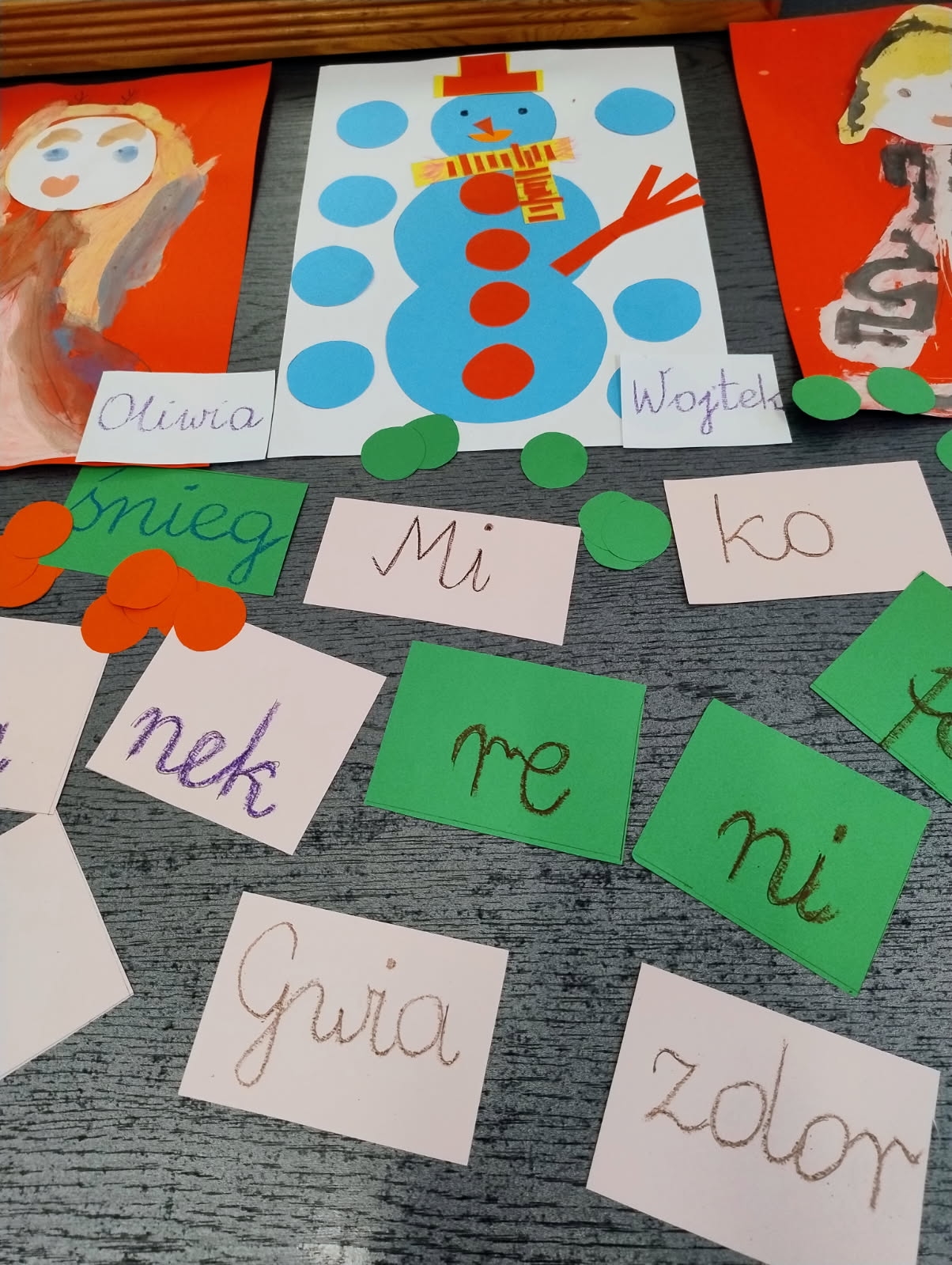 Dnia 5 grudnia podczas ćwiczeń logopedycznych dzieci z grupy wczesnoszkolnej uczestniczyły w zimowych zabawach logopedycznych "Świąteczny bank wyrazów". Ćwiczenia te odbywały się w formie ciekawych zadań z wykorzystaniem różnych materiałów dydaktyczno-logopedycznych, które wspierały rozwój umiejętności werbalnych. Podczas wykonywania ćwiczeń dzieci doskonaliły swoje umiejętności polonistyczne, gromadziły bank wyrazów z rozsypanki sylabowej o tematyce świątecznej. W ten sposób wzbogacały swoje słownictwo